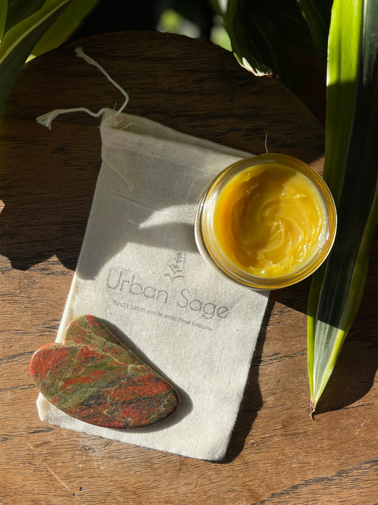 Set includes one Gua Sha tool and a full size 2 oz Jar of Glow Balm